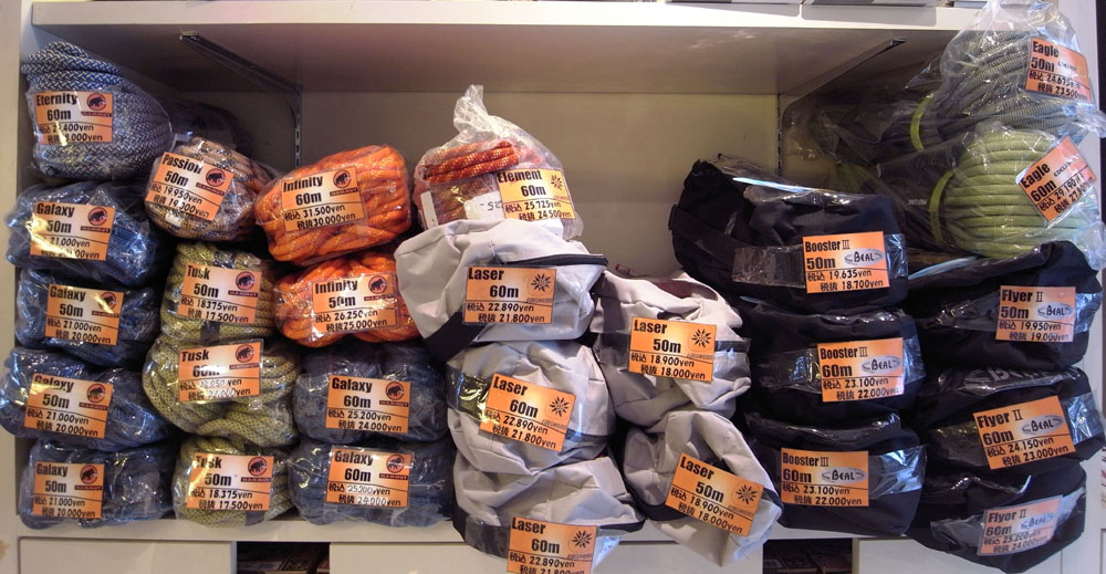 左からMAMMUT,EDELWEISS,BEAL,EDELRIDの
