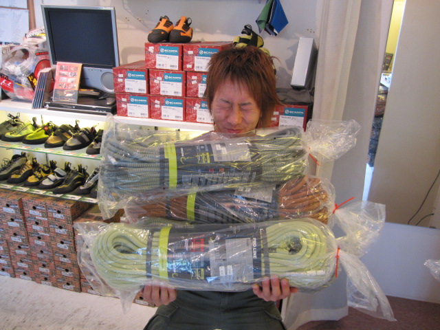 黄色いロープがタスク(9.8mm)。両方とも50m&60mあり。