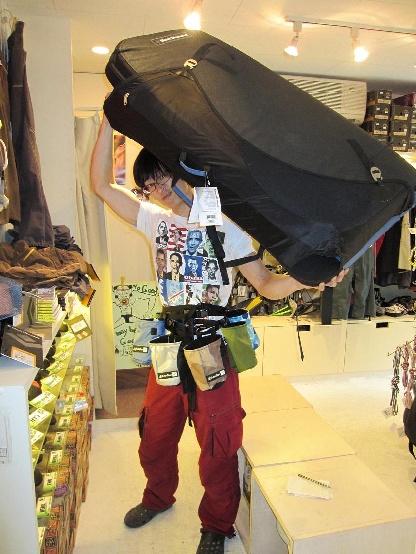 彼が担いでいるのが今年モデルチェンジしたBlack Diamondのベストセラーボルダーマット”ドロップゾーン”。