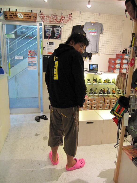 そんな春トゥーが着こなしているのがボルダリングマットのメーカーORGANICのレアモノパーカーBlack pull over Cake and pie hoodyとdragon climbingのCrescene 3/4 short。